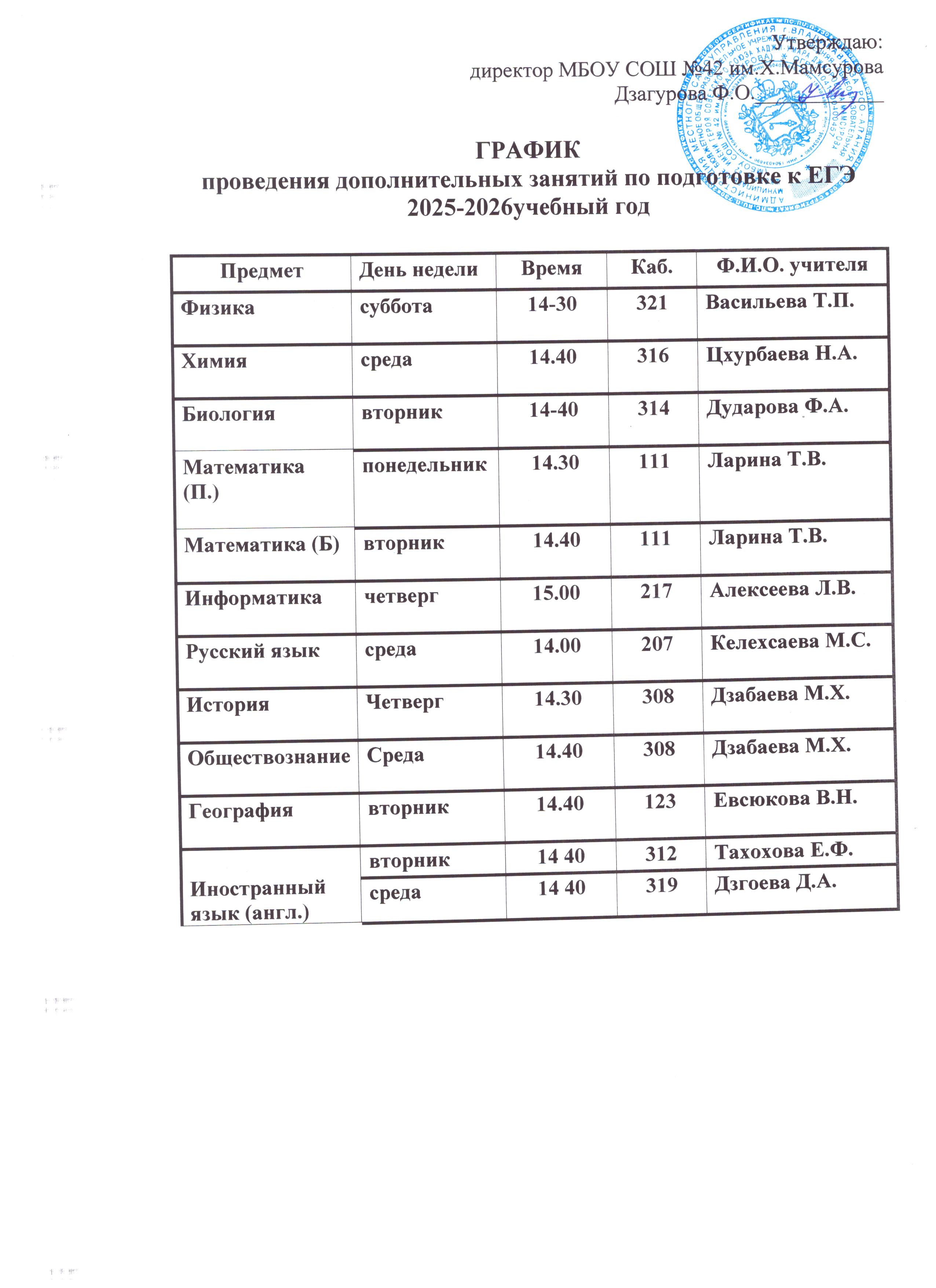 ПЛАН работы по подготовке учащихся 11-х классов МБОУ СОШ №42 им.Х.Мамсурова к проведению ГИА-11 в форме ЕГЭ в 2019 – 2020 уч. году